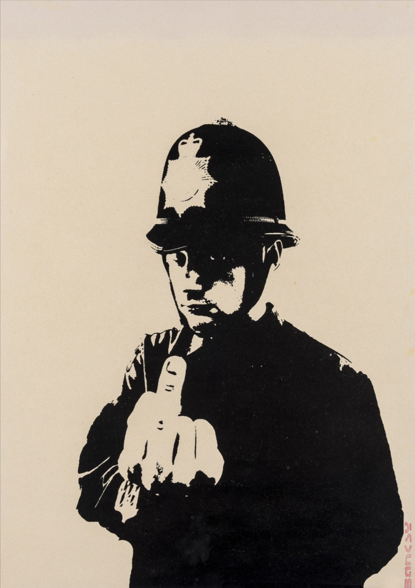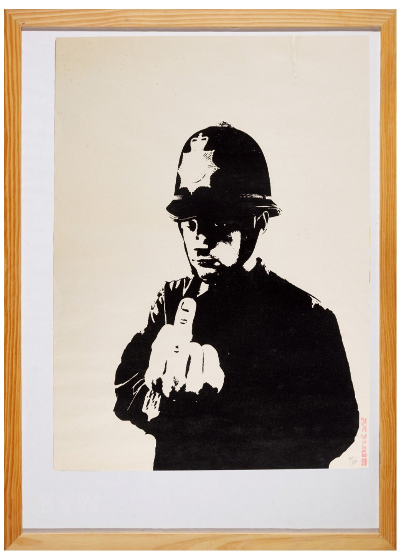 Stamped with the BANKSY tag in red ink, lower right