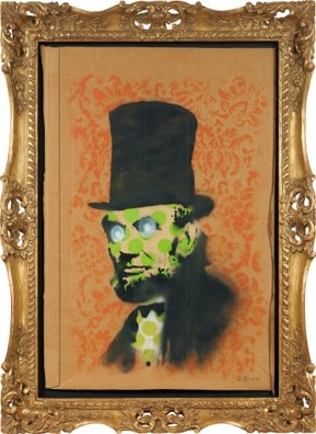 Spray-paint and acrylic on canvas mounted on board, in artist’s frame