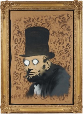 Unique, Stenciled-signed “BANKSY” on the overlap