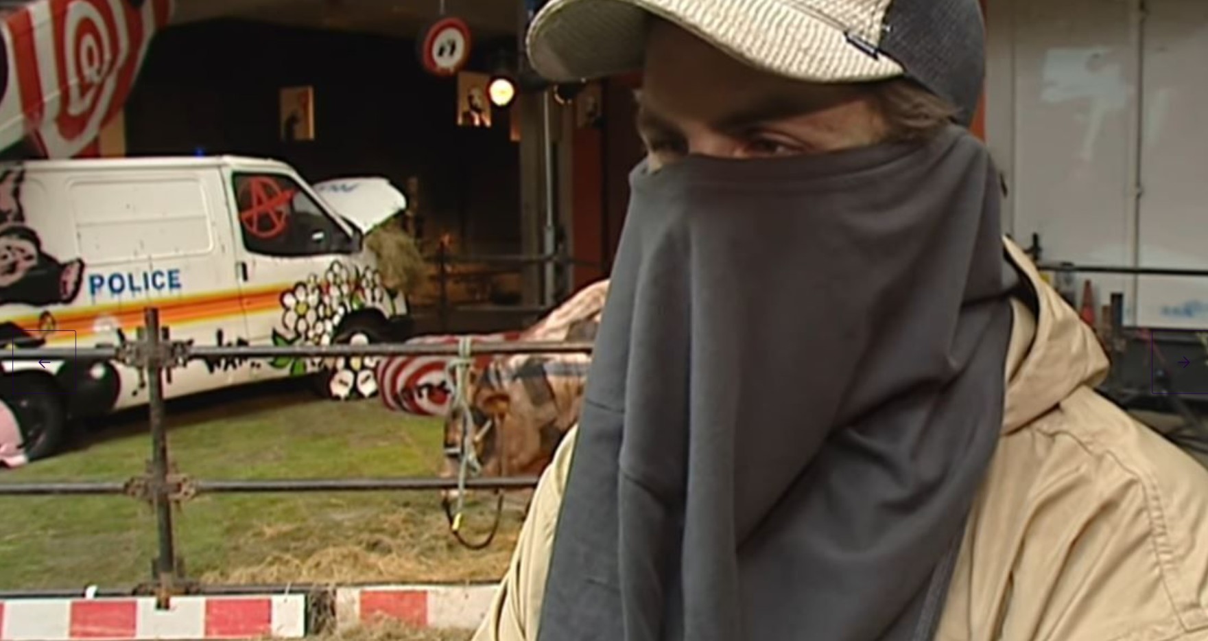 One side of the van featured the words “Turf War” next to a painting of a gas-masked pig lighting a bomb, an anarchy symbol, and flowers. The phrase “Anarchy in the West Country” was sprayed across the other side of the vehicle. The rear of the van featured yellow and orange stripes on the doors, and the image of a chimpanzee staring out at the world from the rear window.