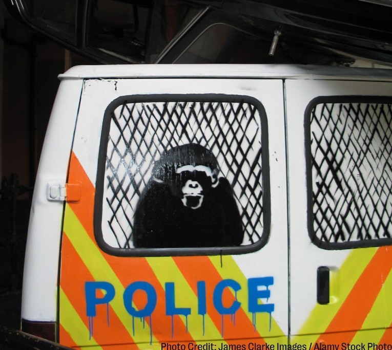 Banksy | Police Van Chimp London Turf War Exhibition Stencil Painting