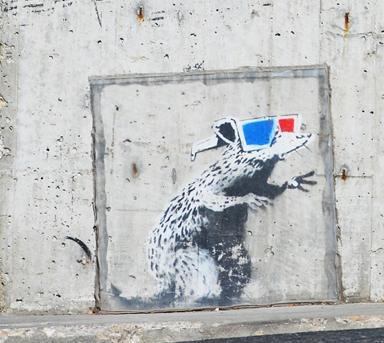 In January 2010, Banksy visited Park City in Utah, where he created several Artworks including some ‘3D Rats’. His trip to Utah was coincide in the run up to the premiere of Banksy’s film ‘Exit Through the Gift Shop’ which was playing at the 2010 Sundance Festival in the Egyptian Theatre in Park City. Most of his pieces he produced during this time were subsequently lost to the harsh weather conditions, painted over by homeowners or damaged by local vandals. Only three ‘3D Rats’ from Banksy´s trip to Park City have survived. This piece is by far the finest example.