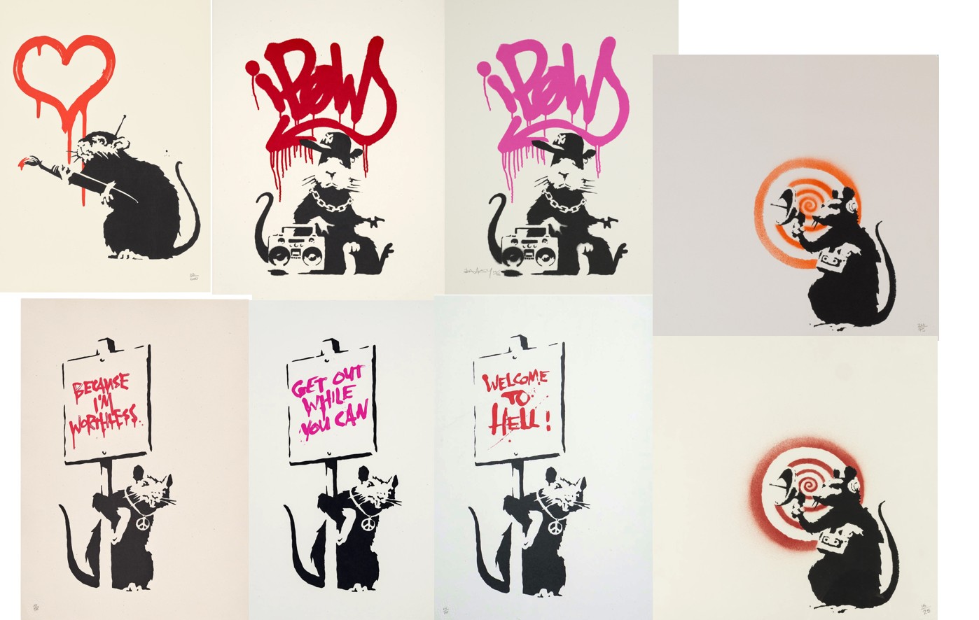 Banksy released a series of Rat prints in 2004, including Gangsta Rat, and Love Rat, as well as a series of Placard Rats.