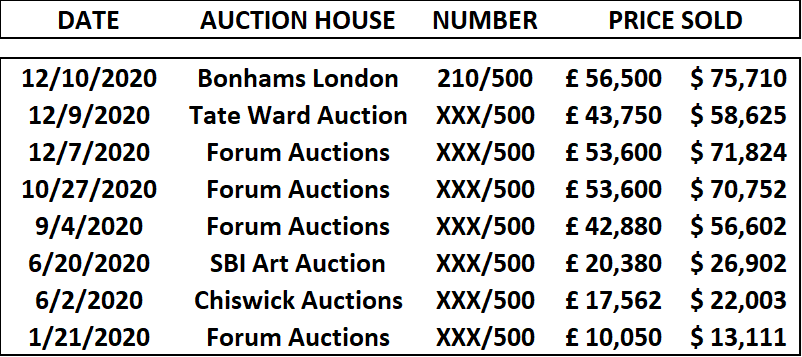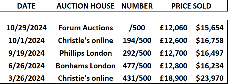 Sale Ends (V.2) sold once at auction in 2024, at Forum Auctions on 29 October 2024 for GBP 22,780 (USD 29,568).
