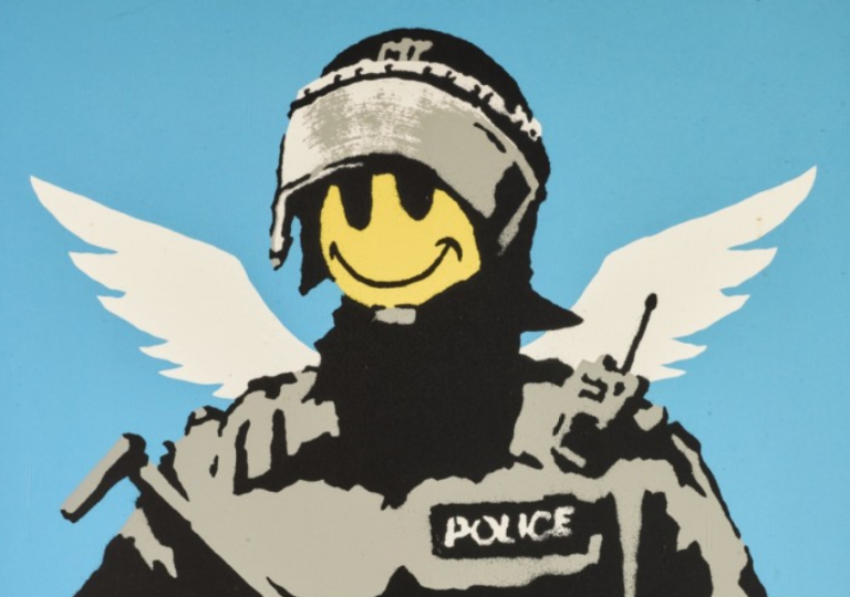“The Greatest Crimes in the world are not committed by people breaking the rules but by people following the rules.” Flying Copper is one of Banksy’s earliest and most iconic images. As such, it is well known all around the world. Indeed, this visual is the perfect example of Banksy’s style featuring contrasting aesthetics: photo-realistic … Continue reading Flying Copper, 2003