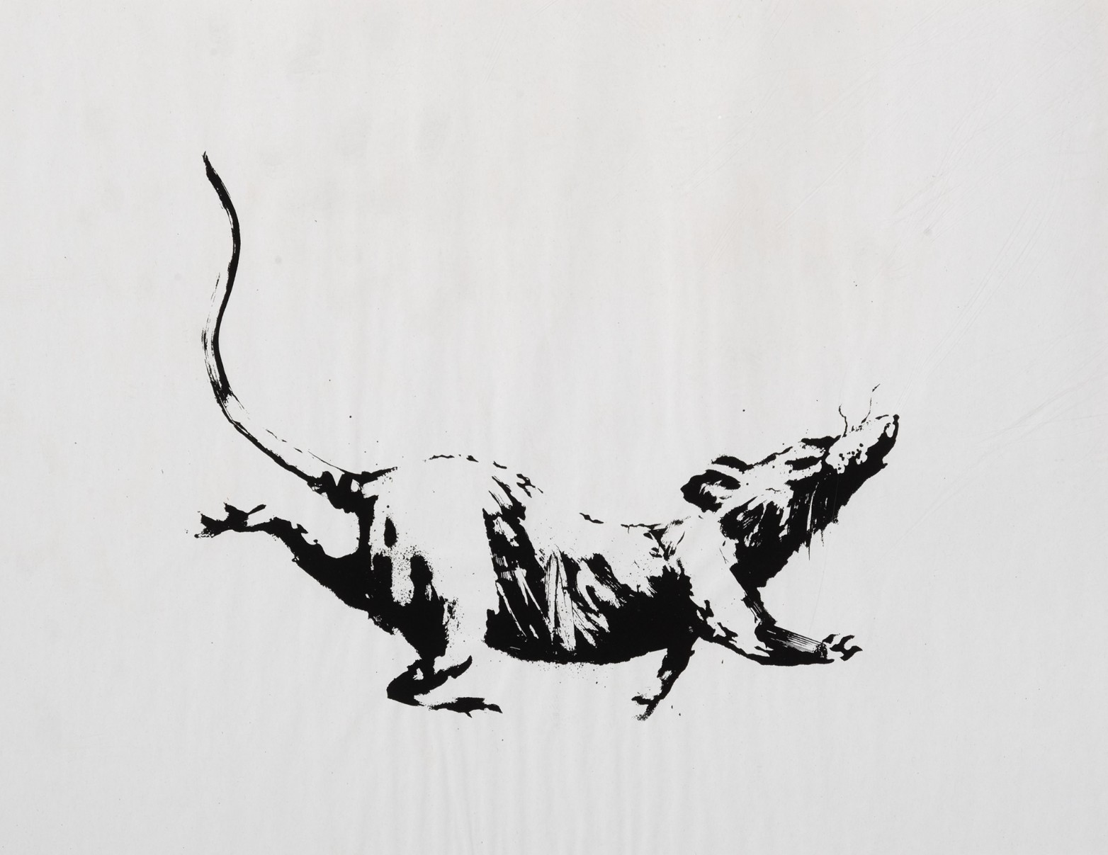 The rat, one of Banksy’s most persistent and personal symbols, appears here in motion, low to the ground, animated by a restless energy. Historically, the rat has functioned as a figure of defiance, an inhabitant of the margins, elusive and resilient. In GDP Rat, however, the tone shifts subtly. The animal no longer feels entirely outside the system it inhabits.