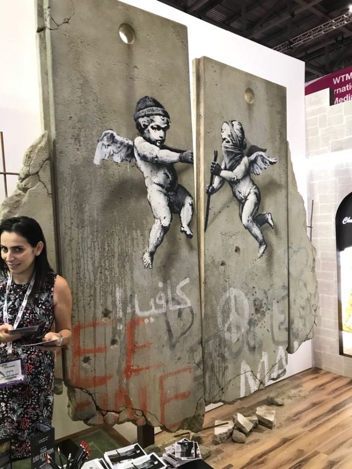 Opening my first ever stall at a trade fair next week. I’ve painted a replica separation barrier to promote the Walled Off hotel, ironically the neighbors have complained it’s too tall. We’ll be at Palestine stand giving away free stuff, World Travel Fair, London Excel center 6th and 7th November. Free to get in if you register online today and pretend to be a travel agent.